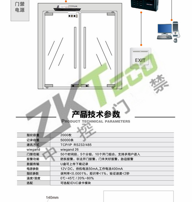 · 記錄數(shù) : 80000· 驗證方式 : [F2]指紋,密碼,指紋或密碼[F2-ID]支持單指紋,卡+指紋,單獨卡,單密碼,指紋或密碼,卡或指紋