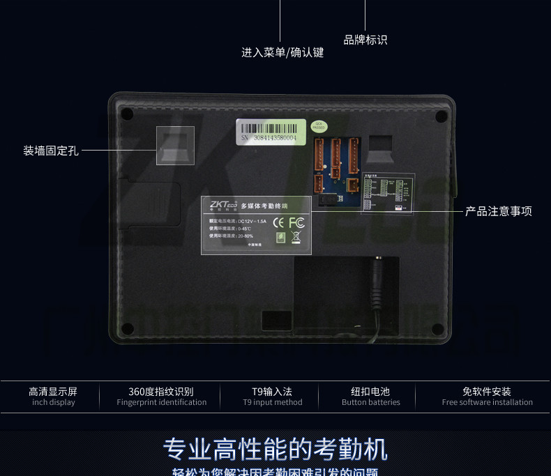 iclock1000是中控科技推出的一款3.5寸彩屏指紋考勤機,該款產品在原來3.5寸彩屏考勤產品的基礎上增加了攝像頭拍照功能,內置130萬像素高淸攝像頭,可以輕松實現員工照片拍攝和顯示,標準的TCPP通訊,經過∪SB「協會認證的U盤下載和cien模式通訊,方便得T9輸入法,對公對私的短消息功能、用戶可自走義的走時響鈴和其高貴典雅的外觀設計,可選配MF、GPRS無線通訊,適合100-500人考勤管理。