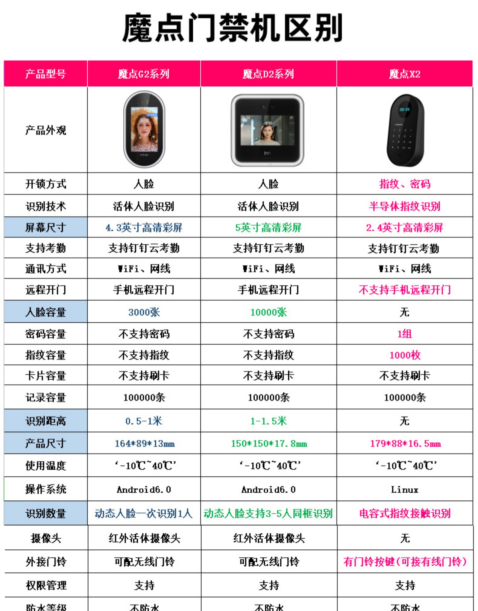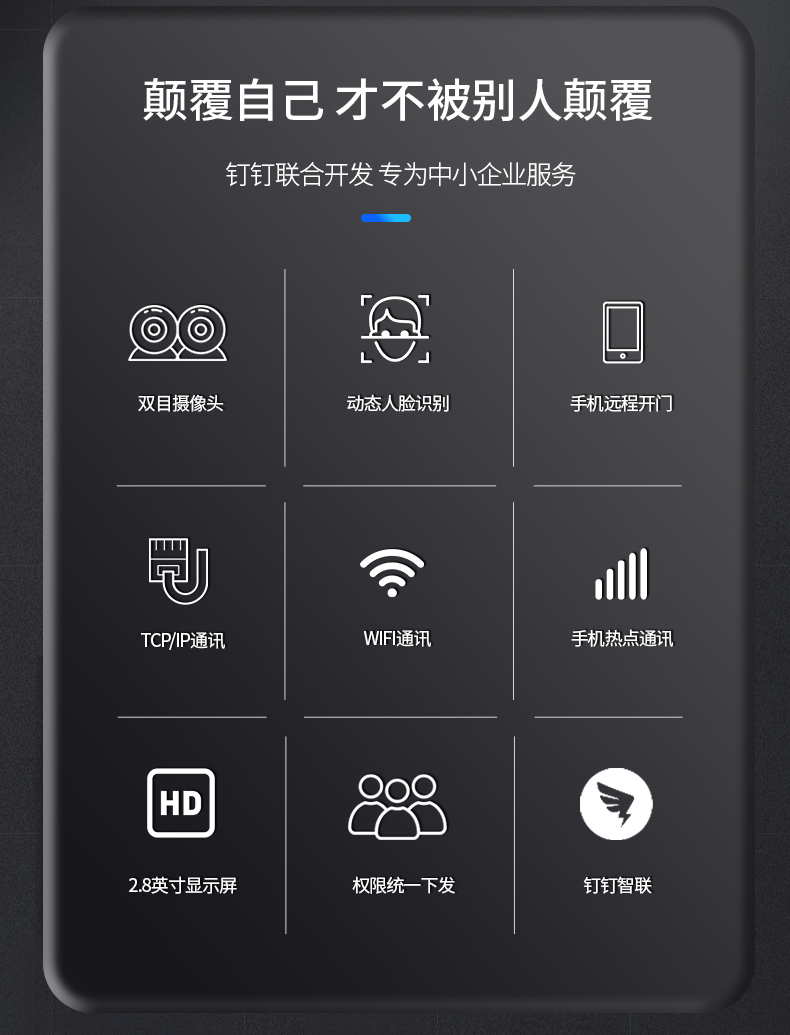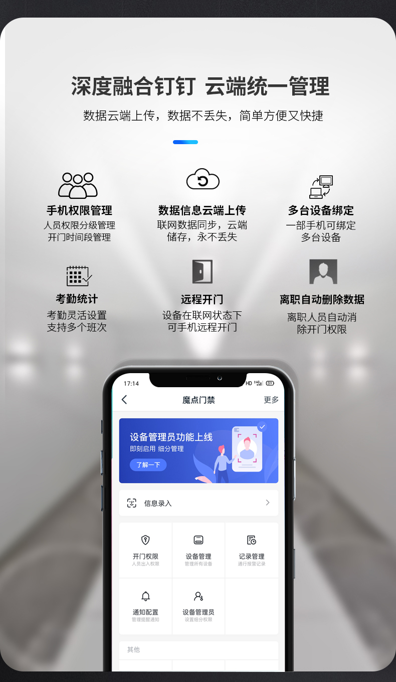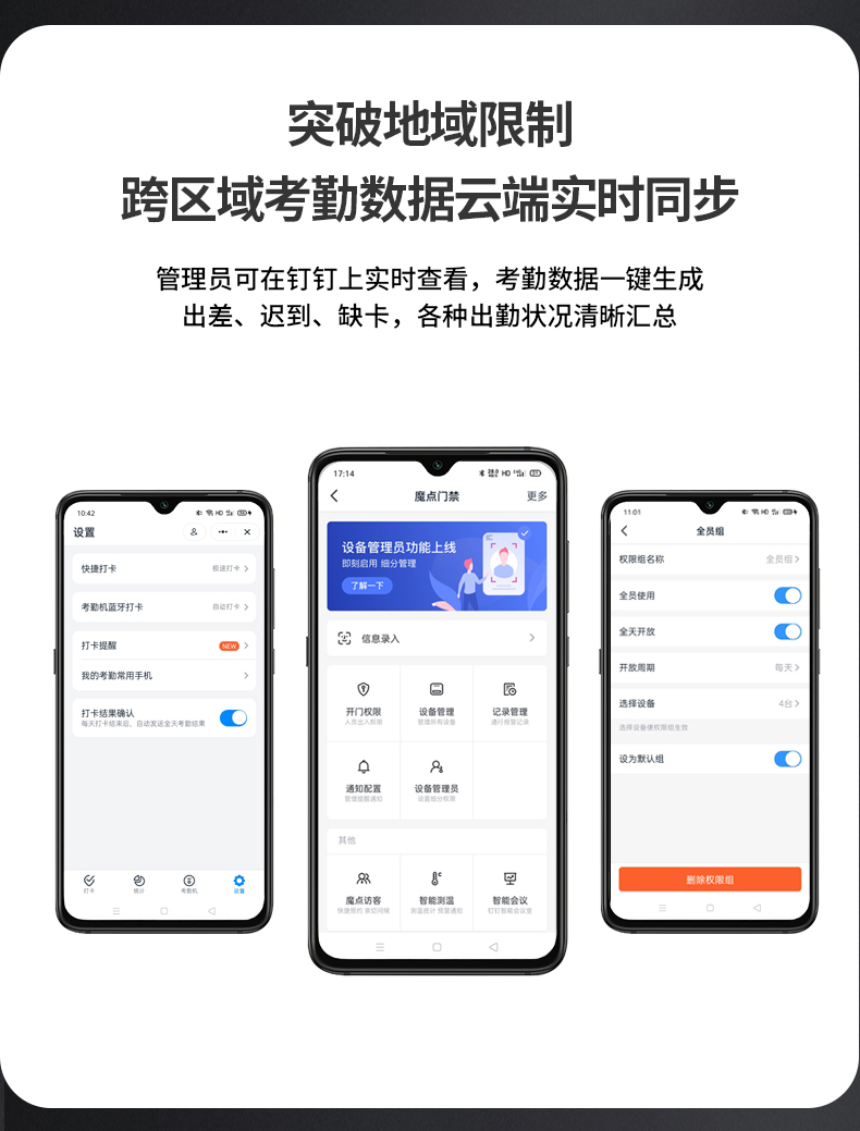 魔點Y2智能人臉考勤門禁搭載海思處理器和智能雙攝,配2.8寸觸摸屏,識別速度僅0.3秒,離線支持1500張人臉容量。 雙目合璧 活體防偽 采用混合光譜技術,活體防偽,抵御圖像攻擊 突破地域限制 跨區域考勤數據云端實時同步 考勤數據一鍵生成,手機可查,輕松便捷 出差,遲到、缺卡,各種出勤狀況清晰匯總 擺脫空間束縛 支持多場景安裝 玲瓏身材,支持玻璃、大理石、乳膠漆等多種墻面安裝,適配更多樣,使用更便捷